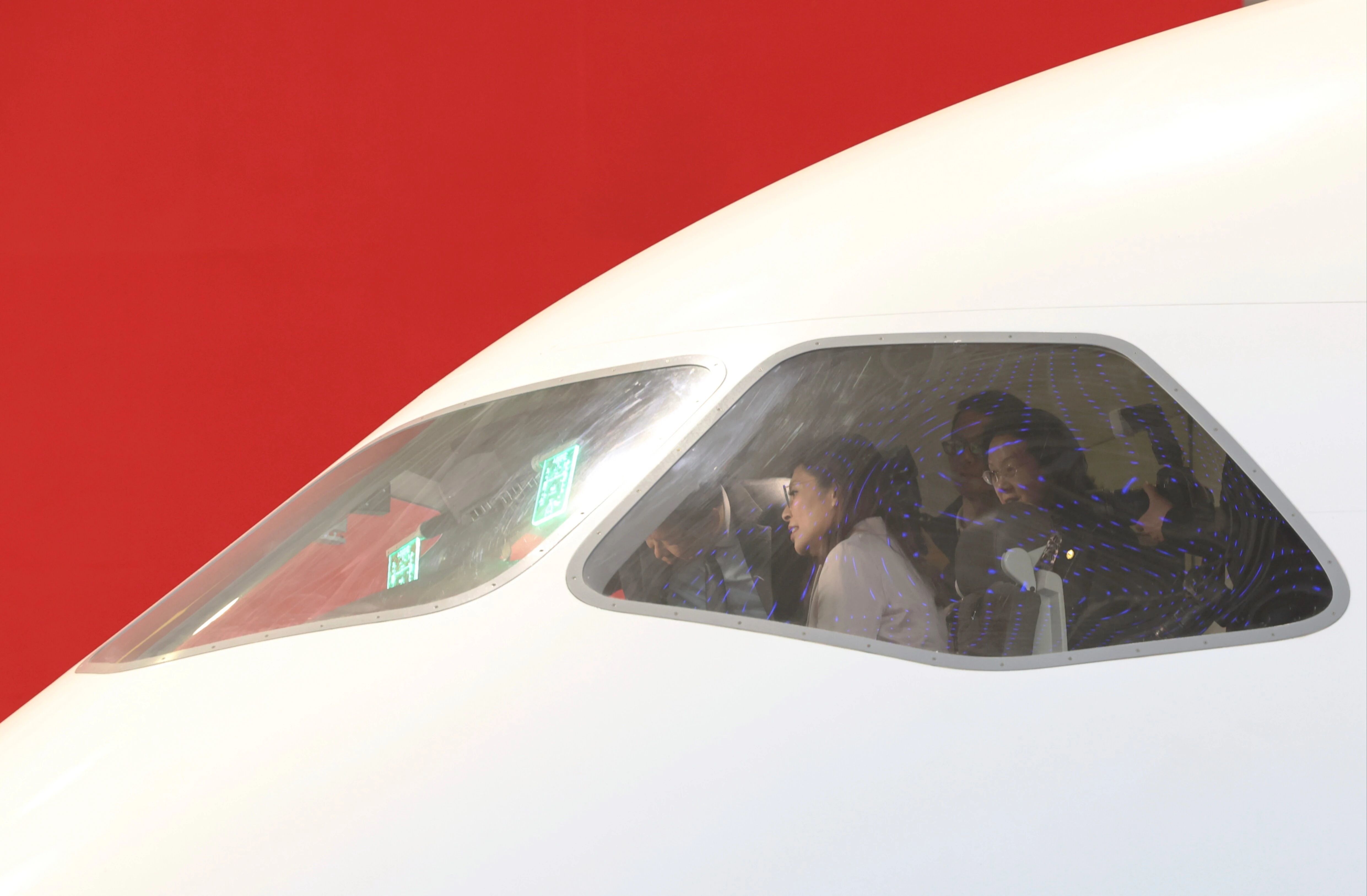 4月9日上午,上海,中国商飞。郑丽文一行走进国产大飞机研发一线,先后登上C909、C919、C929展示样机,近距离感受大陆高端制造业的硬核实力。走进机舱,她仔细查看内部布局、设施配置,认真聆听技术人员讲解研发历程与性能特点 。从C919的成功商用,到C929的稳步推进,中国大飞机从无到有的突破,让访问团成员频频点头称赞。参访结束时,中国商飞向郑丽文赠送飞机模型,她双手接过,眼神中满是赞叹。